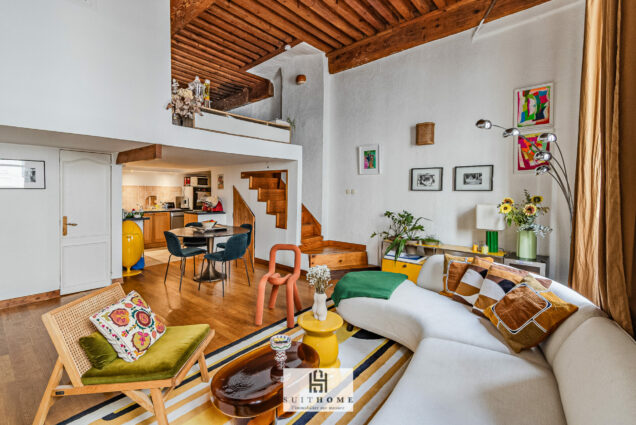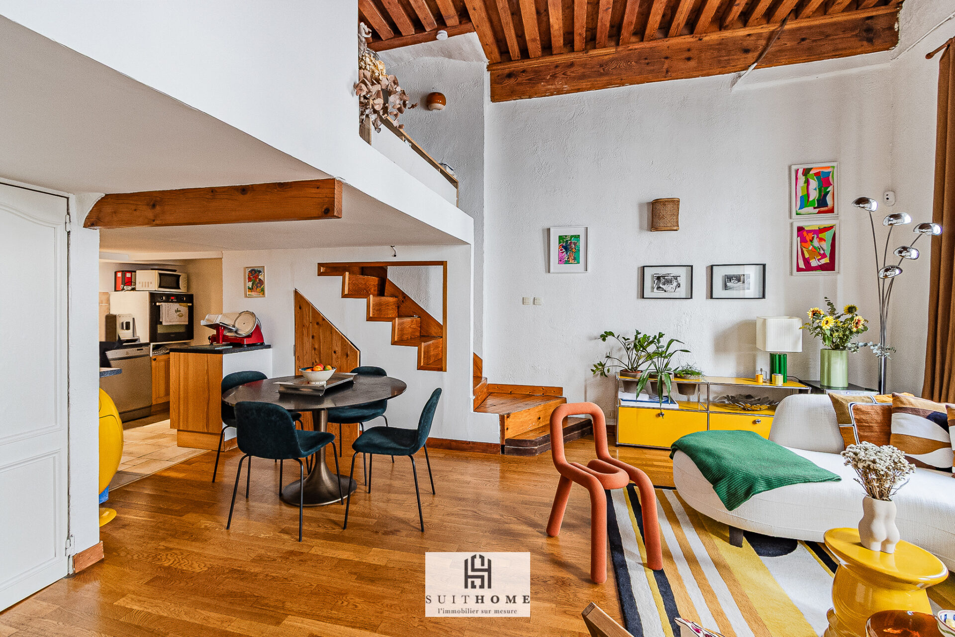 Il se compose d'un séjour lumineux, d'une cuisine aménagée et équipée , d'une SDB avec WC, d'une mezzanine avec son coin nuit et d'un second espace pouvant servir de chambre d'appoint/bureau.Idéal pour un premier achat ou un investissement, cet appartement séduit par son cachet et sa localisation.