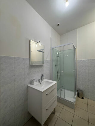 L'étage est composé d'une chambre et d'une salle de bain avec douche, wc séparé, miroir et sèche serviettes.Eau froide individuelle. Chauffage individuel électrique avec radiateurs.
